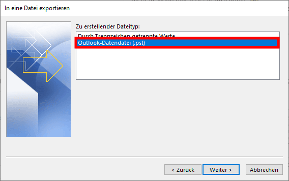 Methode 1: Outlook Ordner per PST-Datei auf neuen PC übertragen
