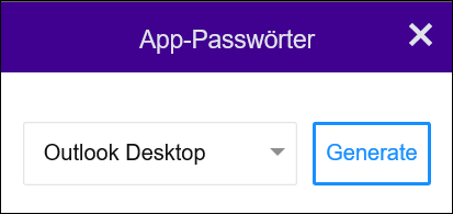 4. Geben Sie im Fenster App-Kennwörter generieren Outlook ein und klicken Sie auf Generate.