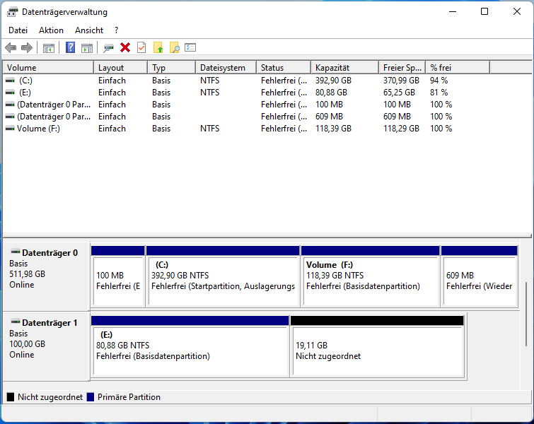 Schritt 1. Öffnen Sie die Datenträgerverwaltung auf Ihrem PC.