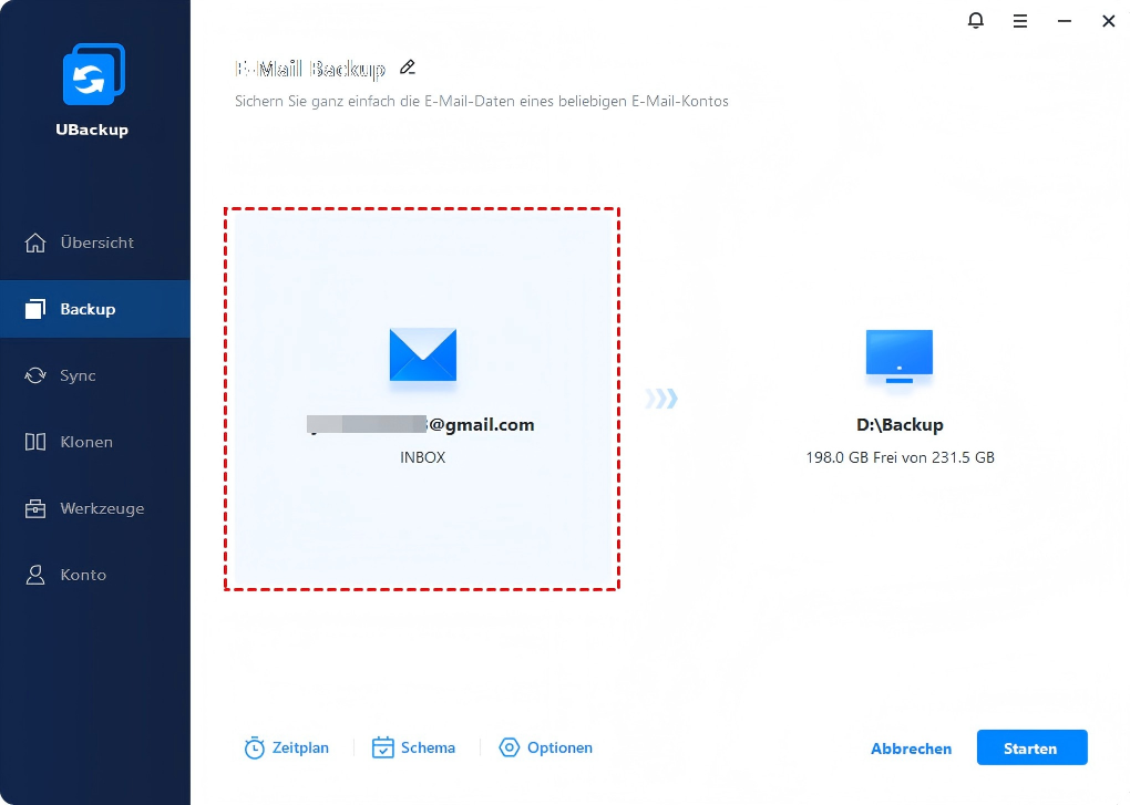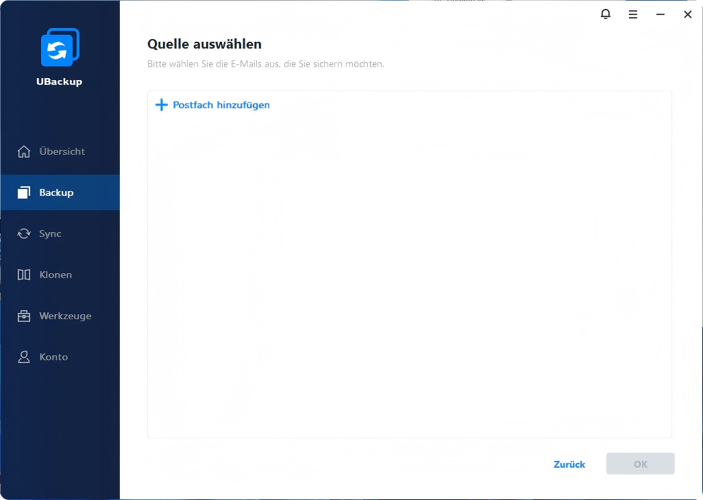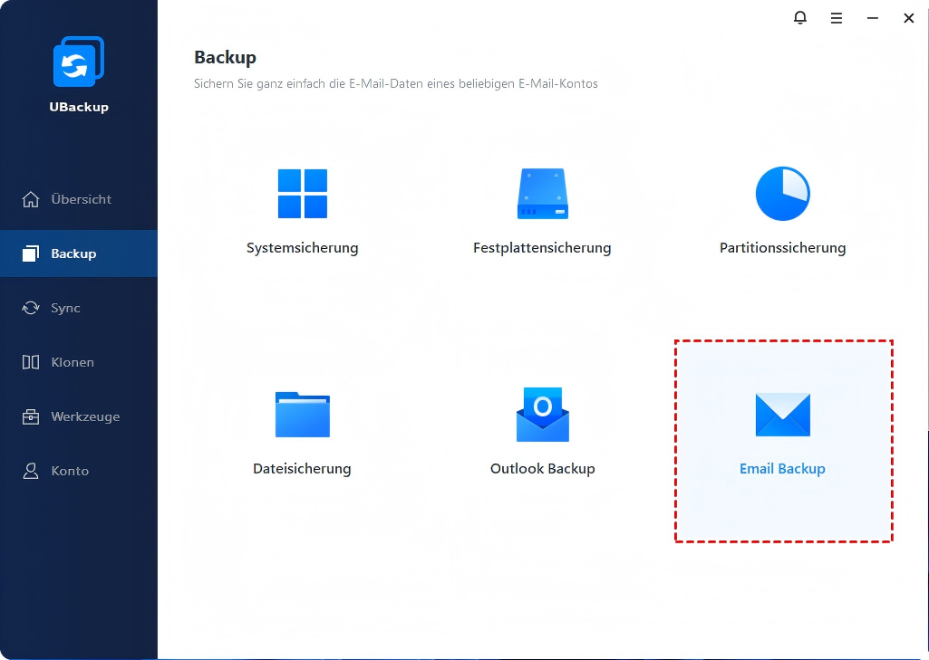 Sichern von E-Mails in UBackup