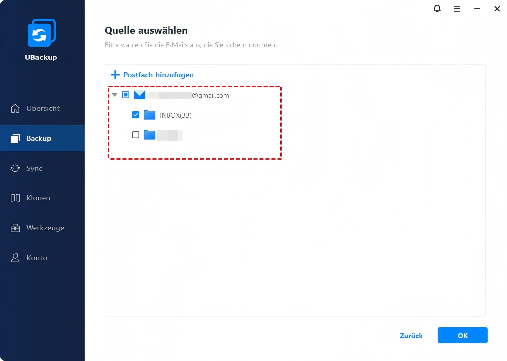 Wie kann man ein Gmail-Postfach für E-Mail-Backup in UBackup hinzufügen?