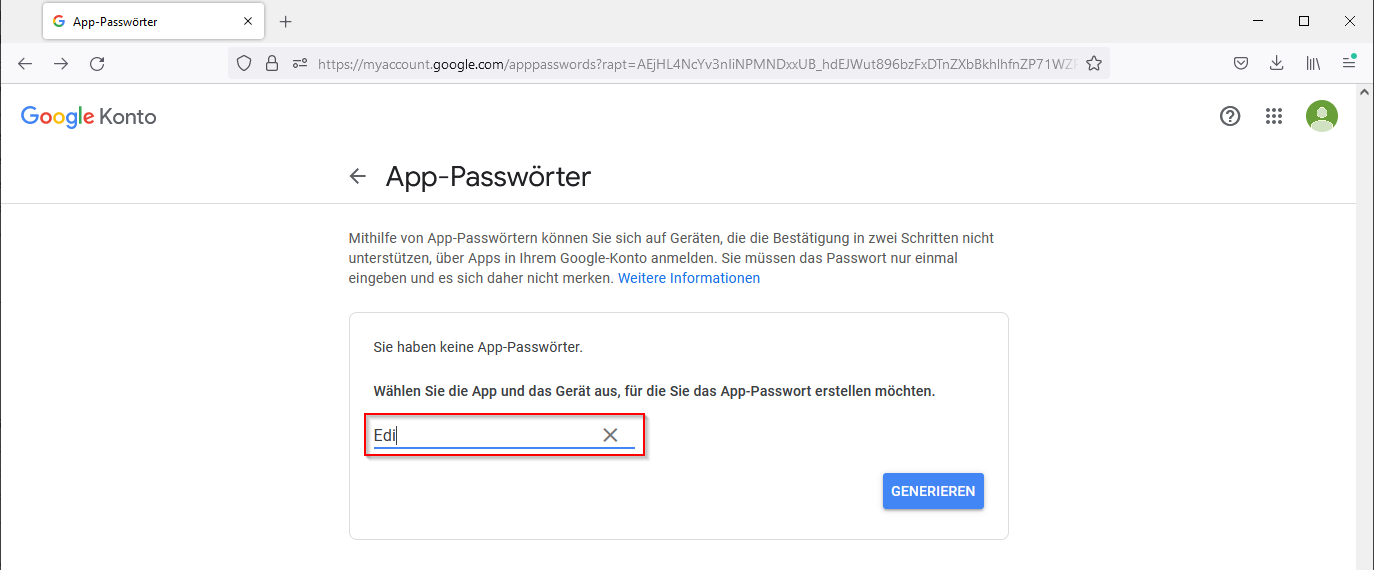App-Passwörter erstellen