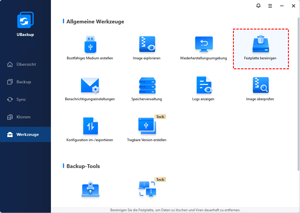Festplatte bereinigen mit UBackup