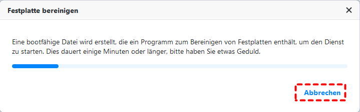 Sie können auf „Abbrechen“ in der unteren rechten Ecke klicken, um den Löschvorgang zu stoppen.