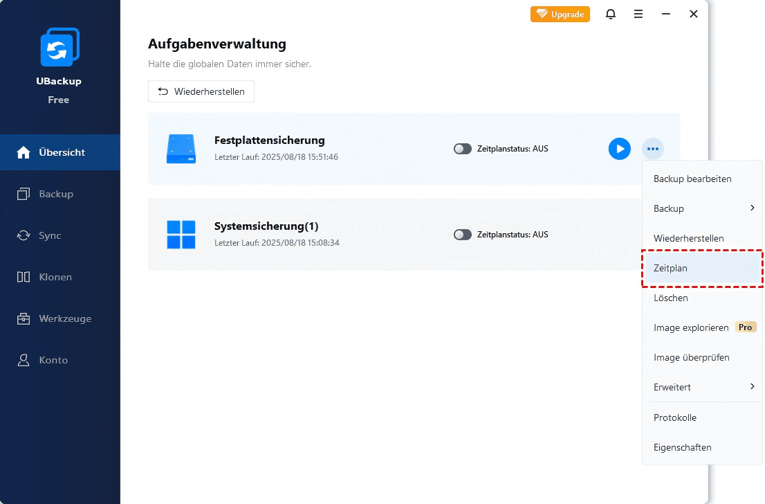 Wenn Sie bereits eine Sicherungsaufgabe erstellt haben, aber die Funktion „Zeitplan“ nicht aktiviert haben, können Sie sie wie folgt aktivieren.